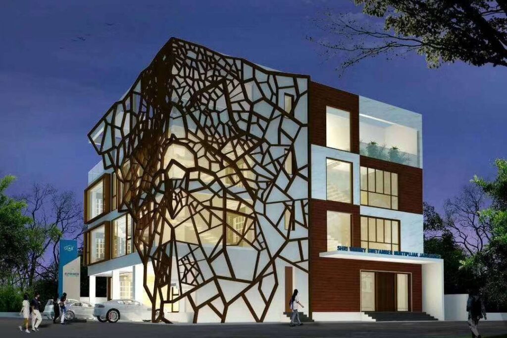 - New age facades created by our international partners using aluminium and steel materials. Complicated and highly engineered material can be customized and created. Perforation, bending, coating, riveting and all such expertise can be aligned to attain the architect’s vision.